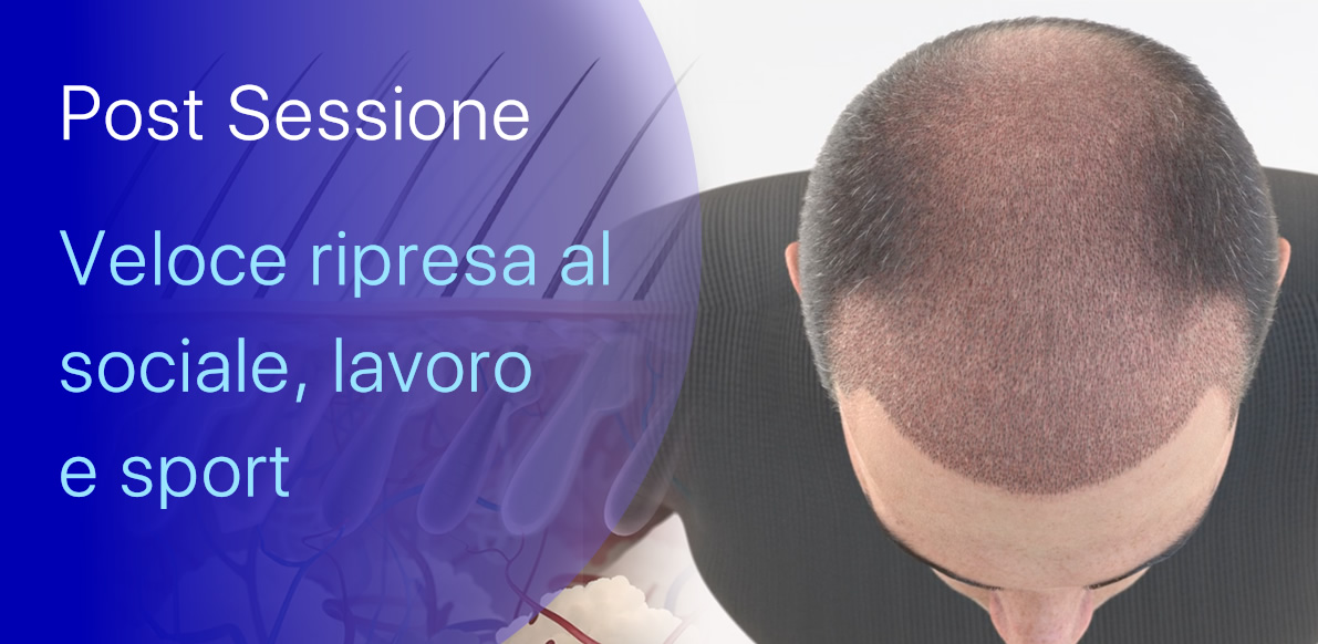 Basso impatto sia sulla Zona Donatrice che sulla Zona Ricevente, post Sessione semplice e indolore. Recupero alla vita sociale è il più veloce. La ricrescita dal terzo mese è costante fino ai 12/14 mesi, ma prosegue fino ai 18/20 mesi.