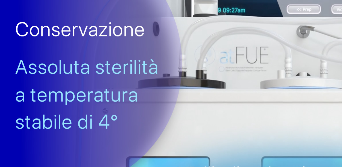 I Follicoli estratti passano, in modo automatizzato, dalla Zona di Prelievo ai contenitori sterili di atFUE. Grazie alla soluzione rigenerativa nella quale vengono “stoccati” e alla temperatura stabile di 4°, i Follicoli si mantengono forti e vitali.