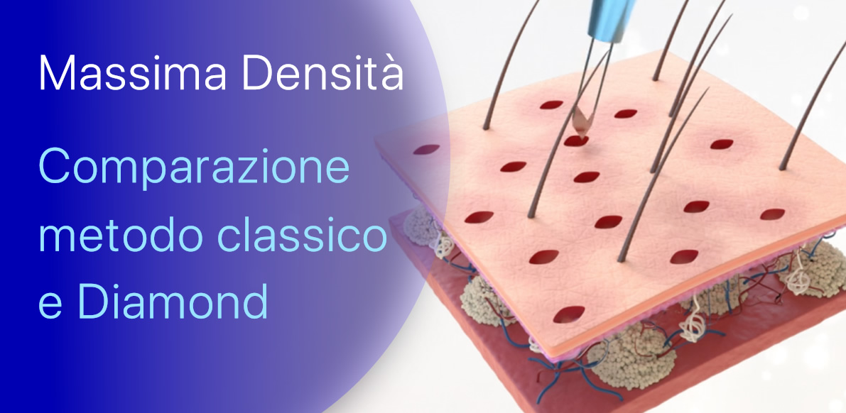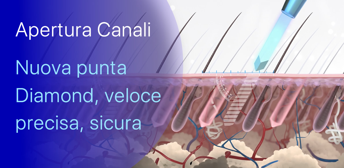 La nuova Punta Diamond è imparagonabile ad altri sistemi utilizzati nel metodo FUE o FUSS /Strip. Velocità d’esecuzione, precisione, angolazione e profondità in totale sicurezza per i Follicoli limitrofi. Una differenza che fa la differenza.