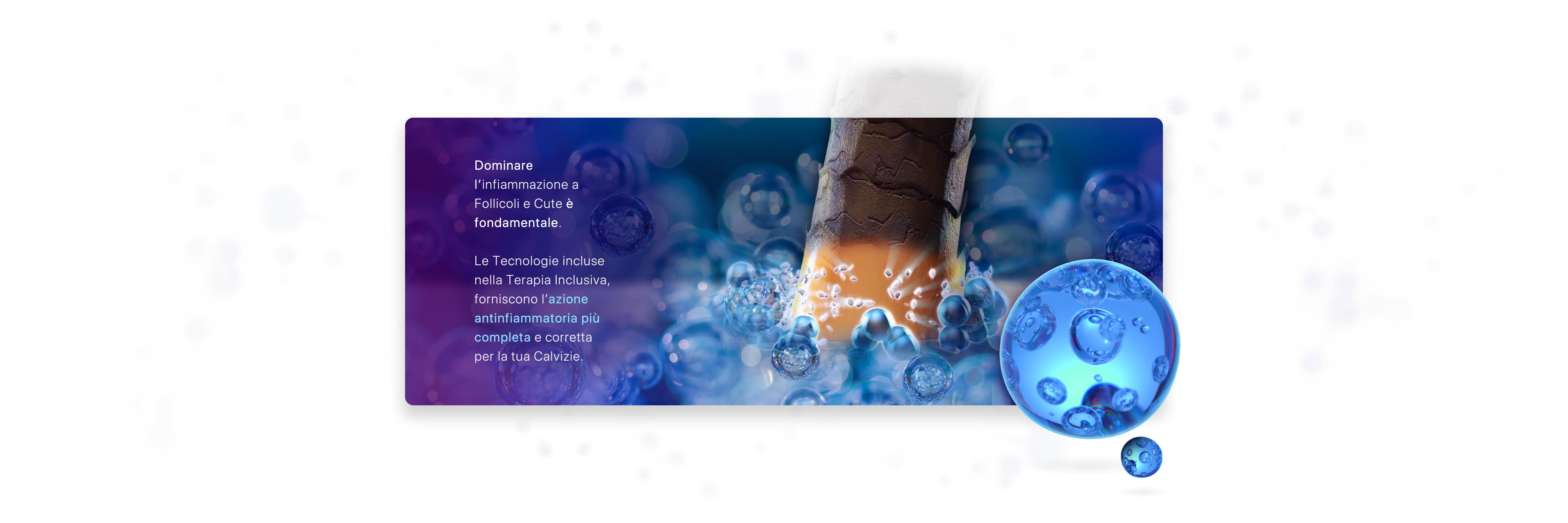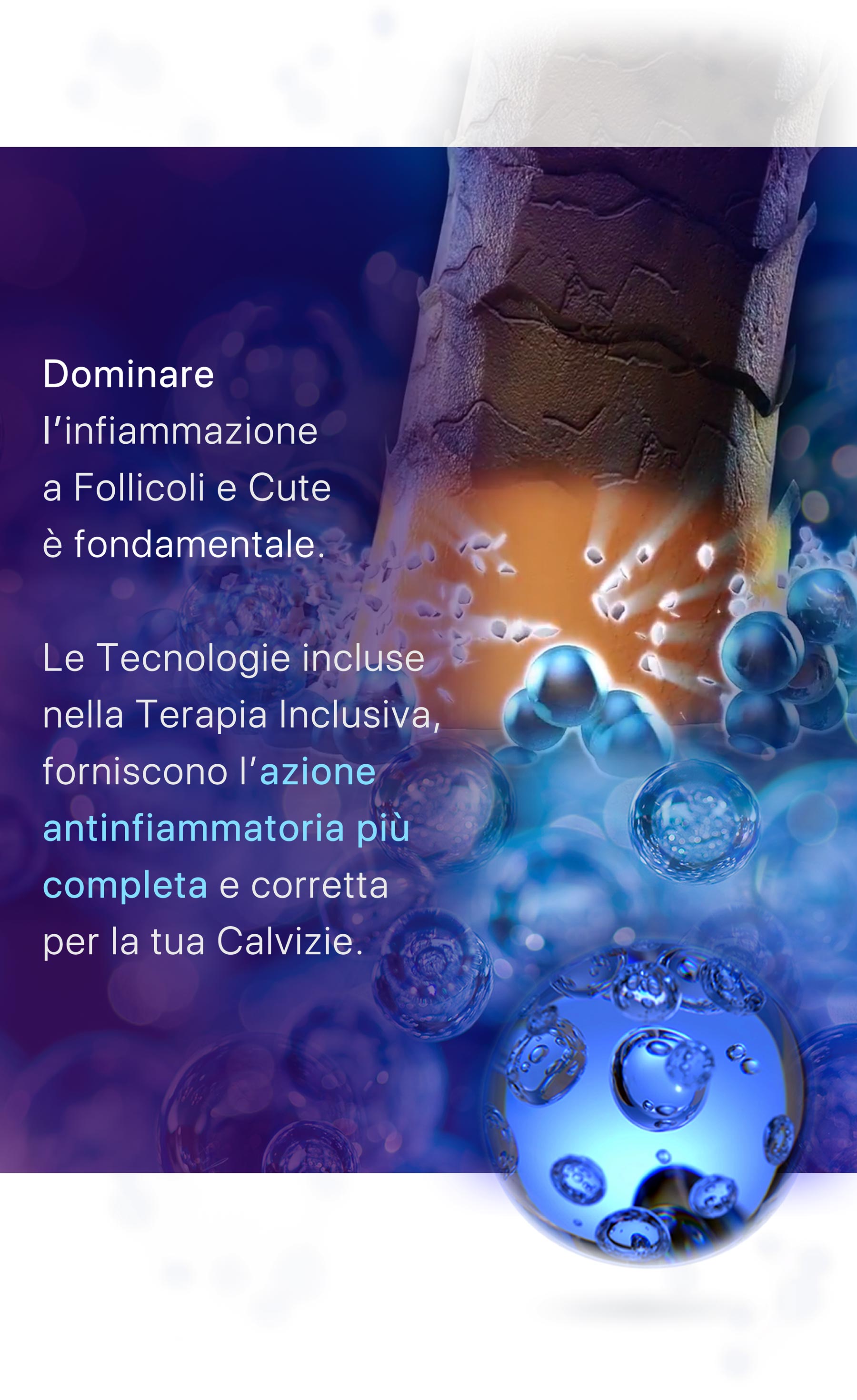 In Sintesi, l’infiammazione è l’elemento cruciale della sofferenza follicolare, spegnere l’infiammazione è l’unico modo per bloccare l’evoluzione della problematica e solo una Terapia Inclusiva Multidisciplinare può agire concretamente in tal senso.
