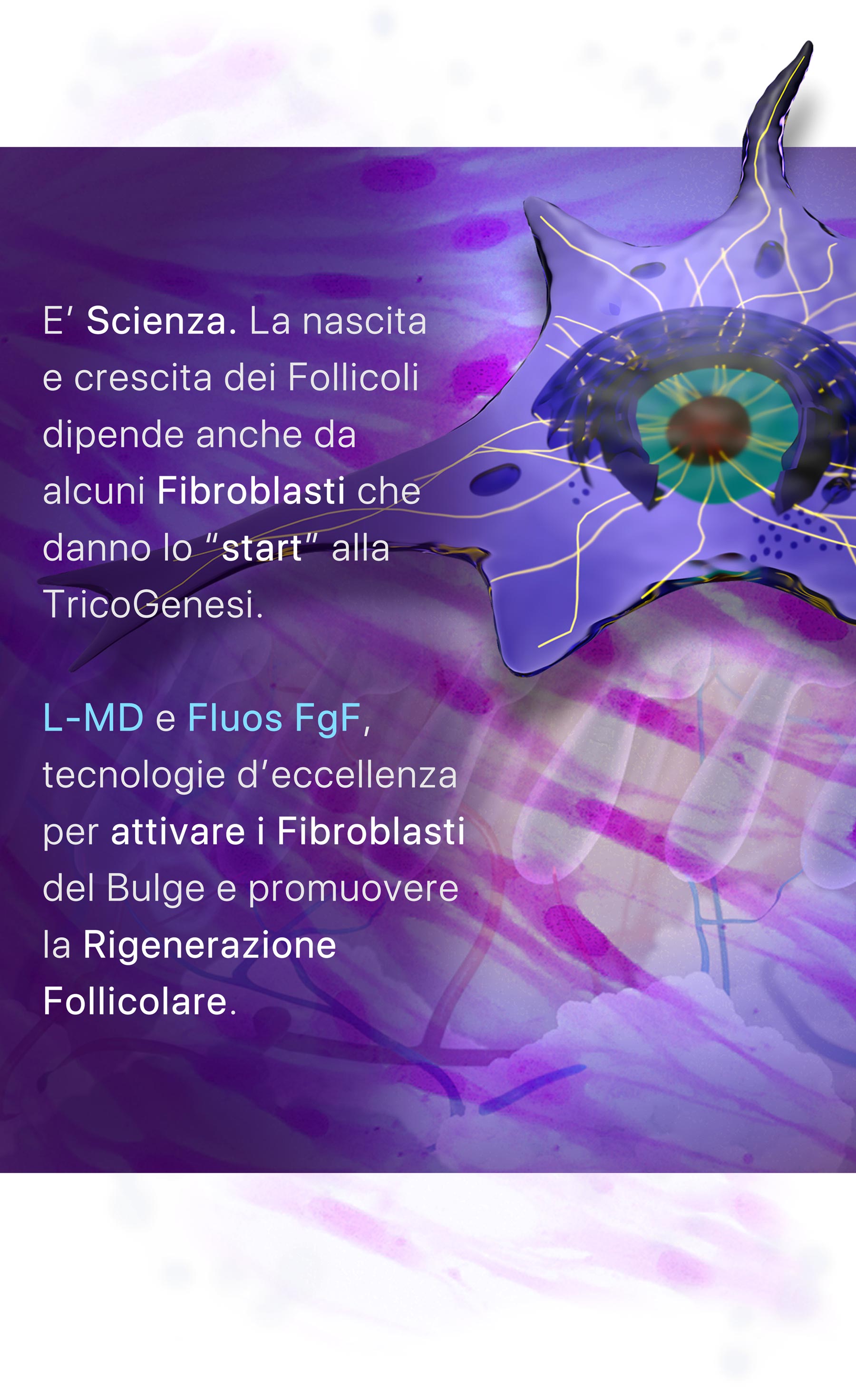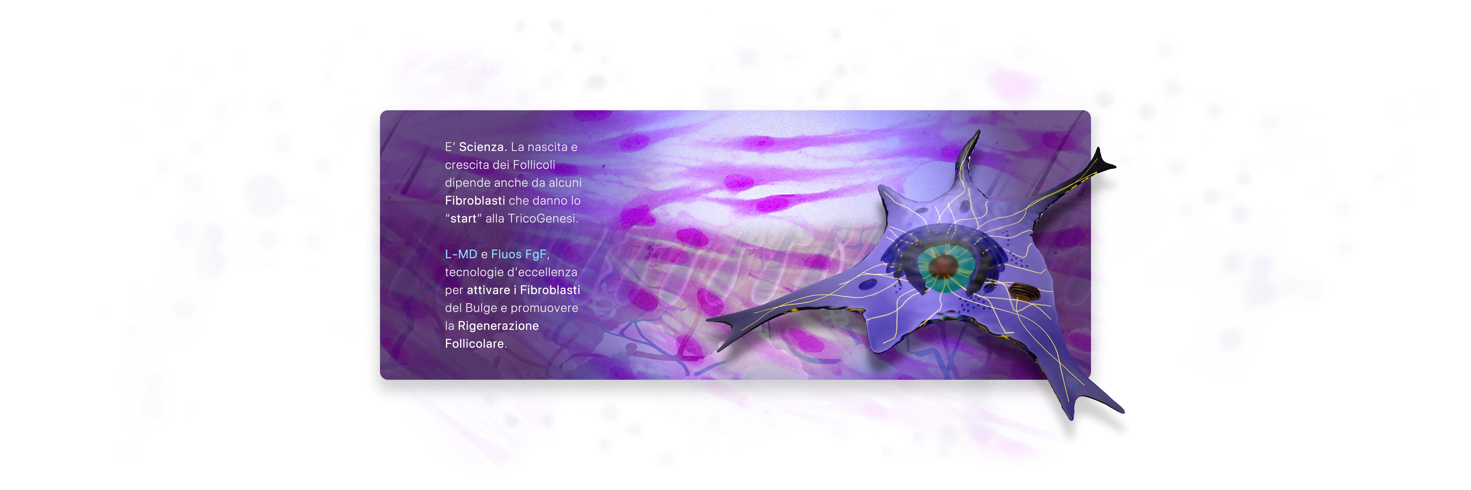 Alcuni specifici Fibroblasti stimolano le Citochine e i Fattori di Crescita, regolano la migrazione e la proliferazione delle Cellule responsabili per la neoformazione dei tessuti e dei dei Follicoli Piliferi.
