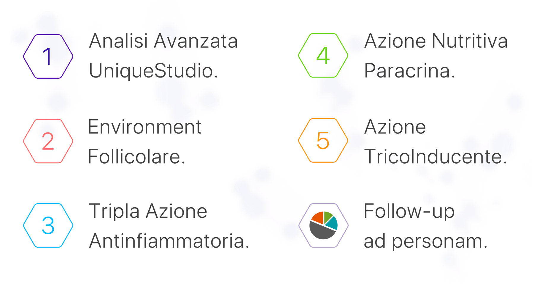 L’approccio terapeutico inclusivo è totalmente personalizzato sul Paziente. Grazie all’Analisi UniqueStudio, eseguita nel giorno della Sessione, ogni Paziente è trattato nel pieno rispetto della sua unicità e dell’unicità della sua Calvizie. Consente di agire dove nasce e si alimenta la tua Calvizie.