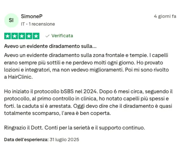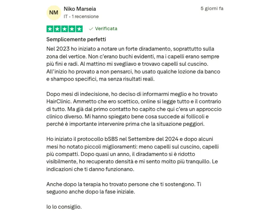 Leggi Testimonianze e Recensioni di Hair Clinic e i Prima e dopo