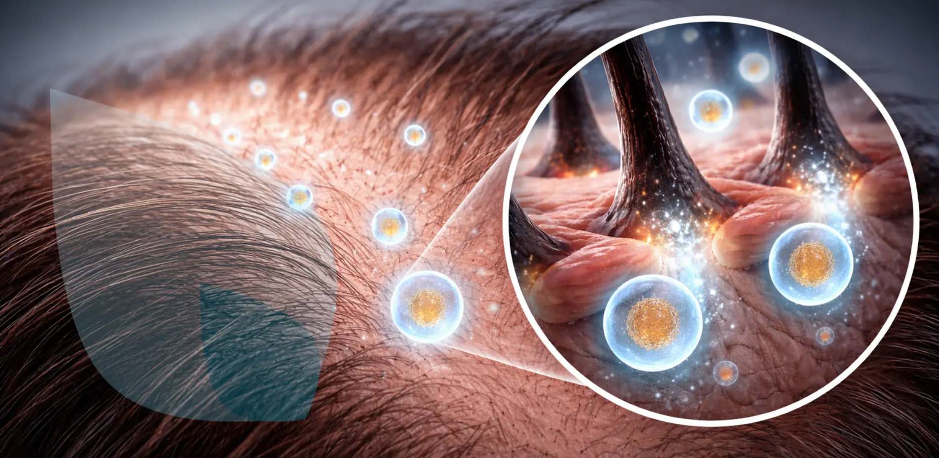 Il modo più semplice per capirli è pensarli come messaggeri biologici intelligenti. Una volta introdotti nel cuoio capelluto tramite micro-iniezioni localizzate, non agiscono in modo generico: fanno un reset del sistema cellulare, portando informazioni precise alle cellule che hanno smesso di funzionare correttamente. Una cellula follicolare indebolita o “sfasata” riceve attraverso gli esosomi un input specifico che la aiuta a ritrovare il suo equilibrio e a lavorare meglio.